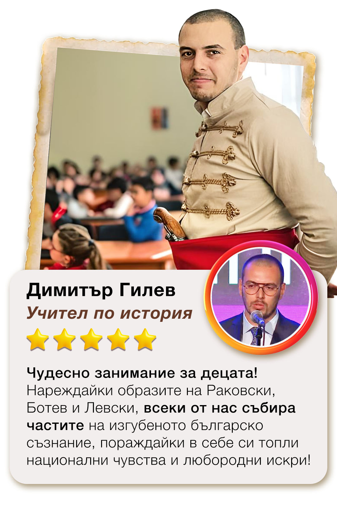 Левски и Ботев са истински хора, които са живели, дишали и се борили за своите идеали, без да притежават свръхсили. Без телепортиране, летене и изстрелване на паяжини! Те са разчитали единствено на личните си качества – смелост, честност, отговорност и любов към народа си. Чрез техния пример децата виждат, че героизмът е постижим и в реалния живот и така откриват път за себе си.