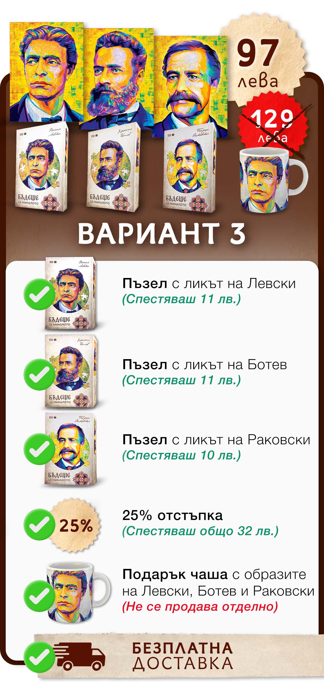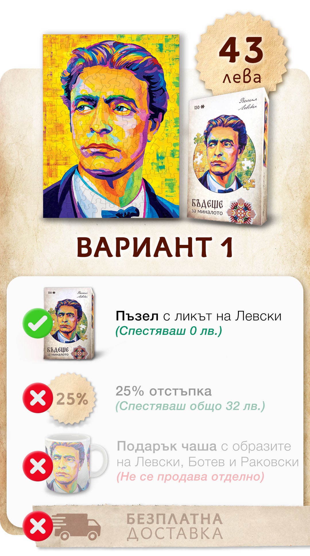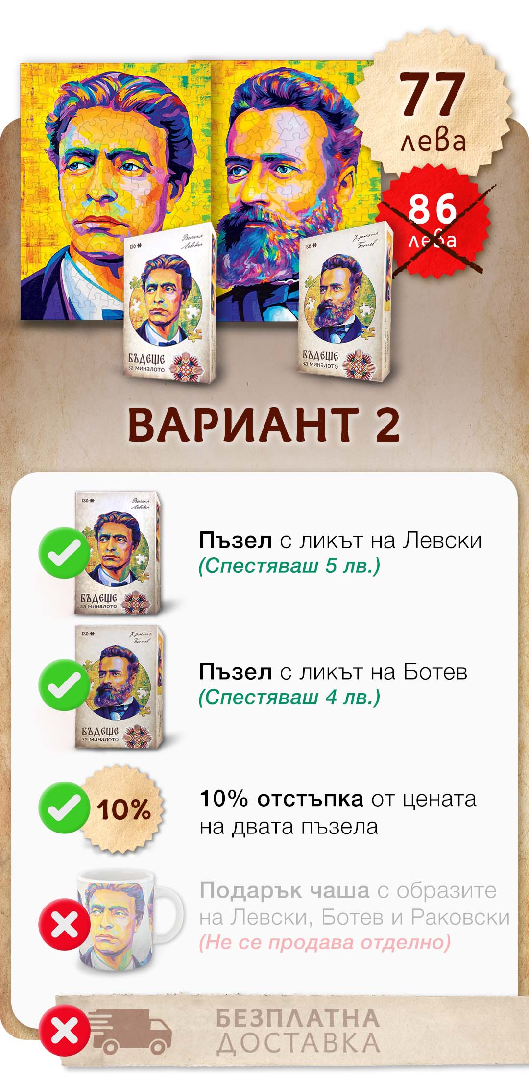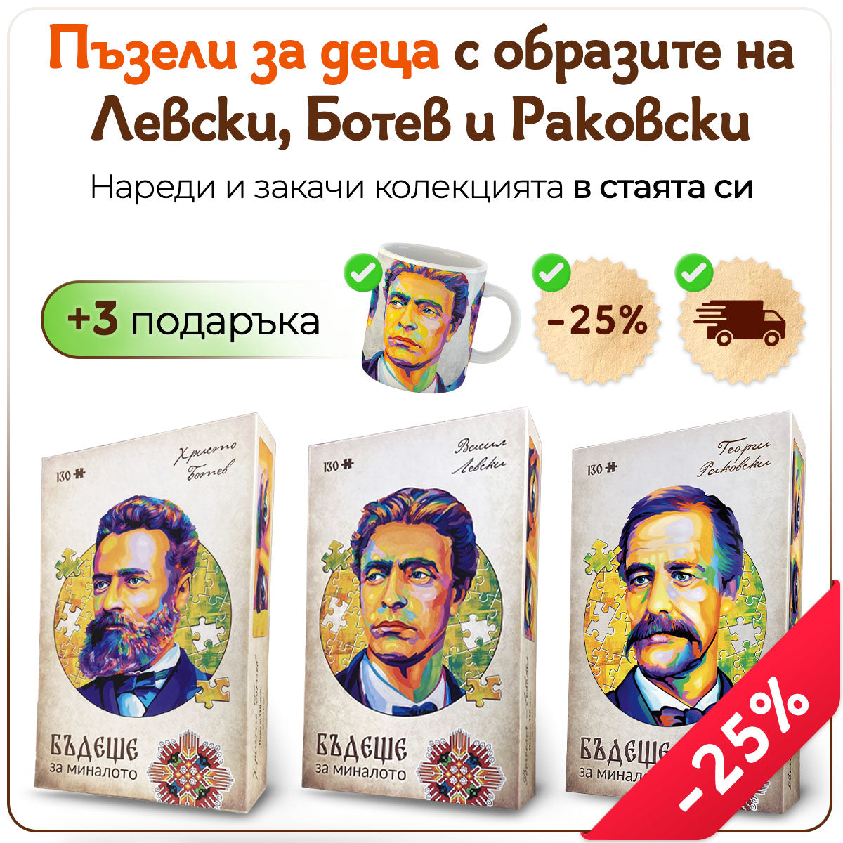 Подкрепете каузата, като закупите комплекта с три пъзела – Левски, Ботев и Раковски, и ще получите 25% отстъпка от цената.