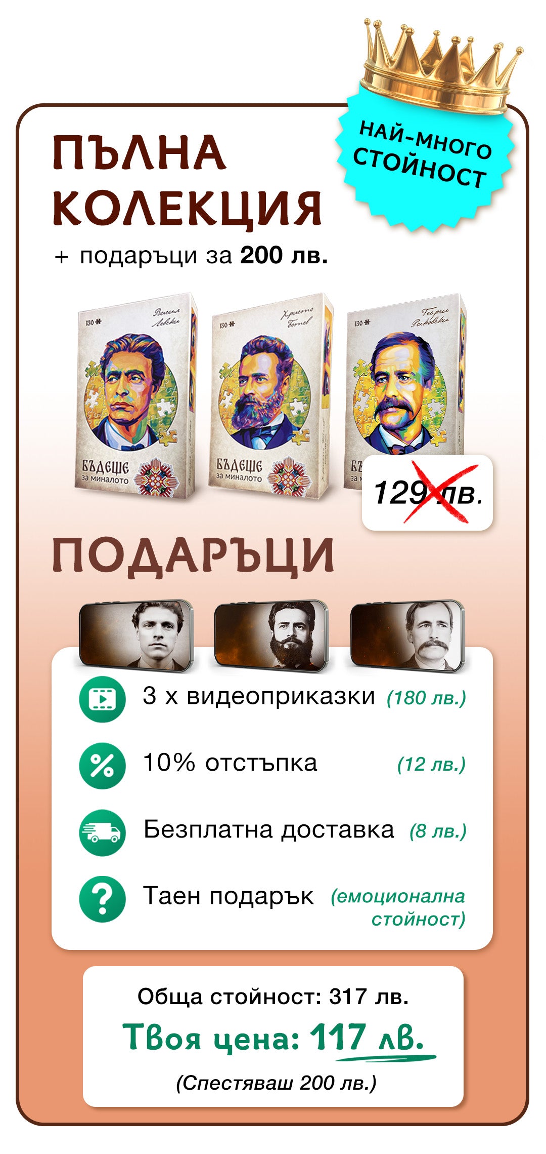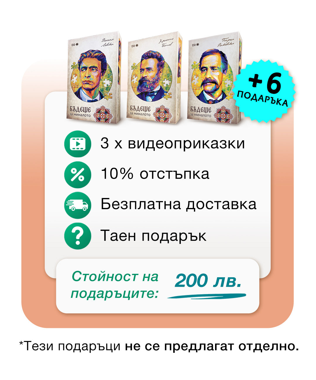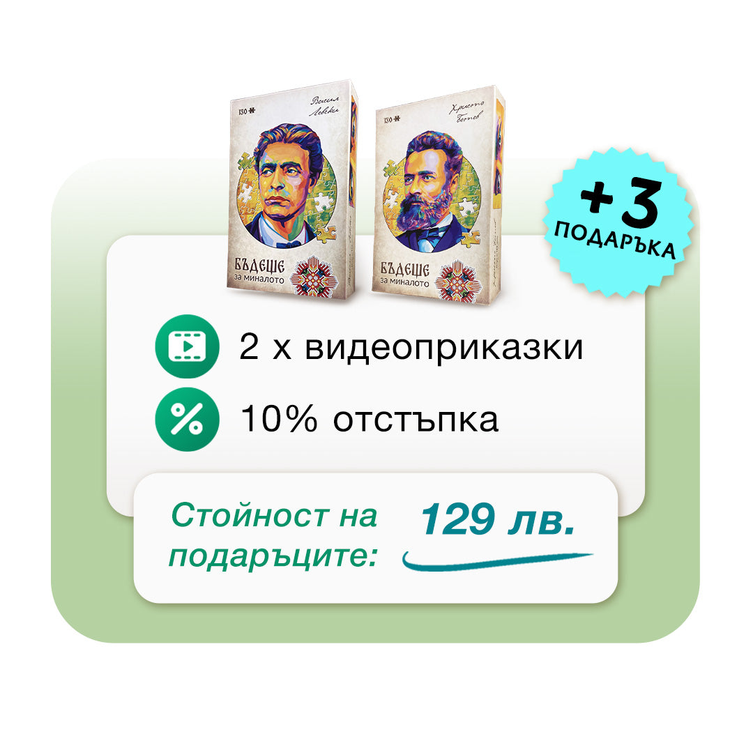 Присъедини се към мисията „Бъдеще за Миналото“ - за съхраняване на българския дух чрез изобразително изкуство и креативни образователни продукти и получи следните подаръци: